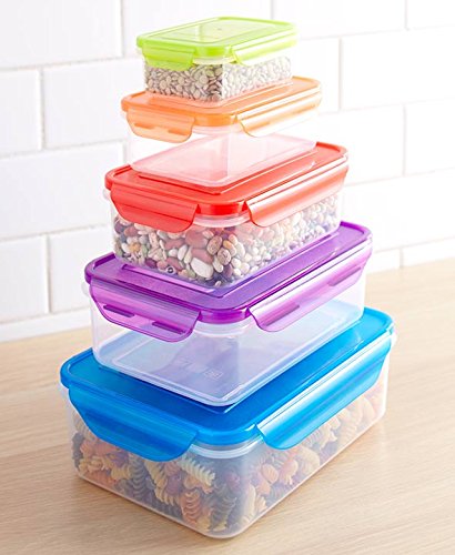 10 Pc Locking Lid and Container Set Cover Stackable Plastic Food Storage Containers (multi rectangle)