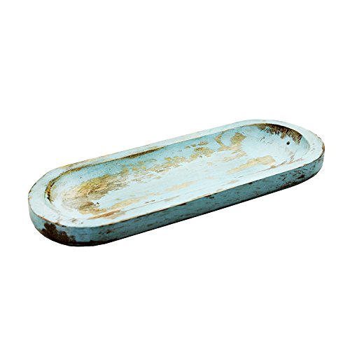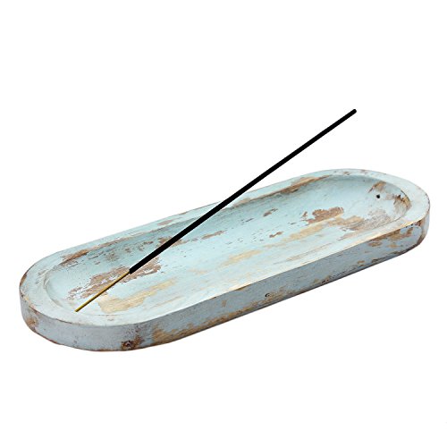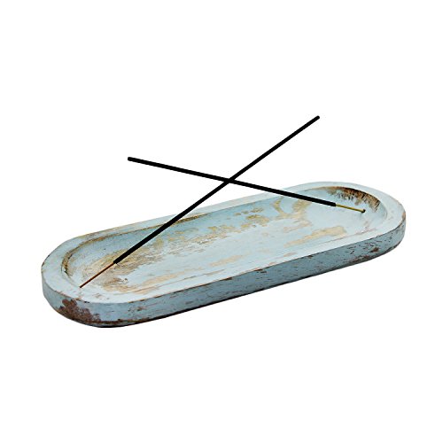Gift From India Natural Wooden Antique Design Stick Burner and Incense Stick Ash Catcher (11"x4"x1")- Blue Wash