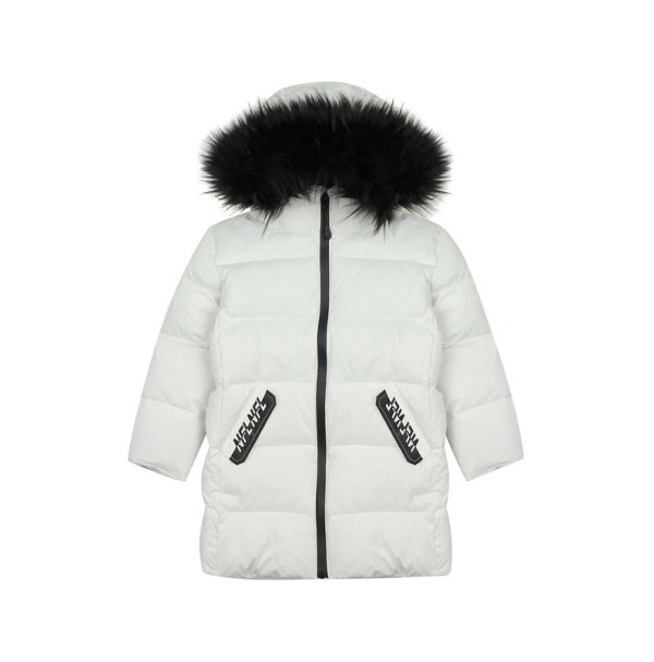 엉덩이 살짝 덮는 기장의 오리털 점퍼로 탈부착 가능한 인조 퍼 트리밍과 포켓 그래픽이 포인트인 아이템입니다.
