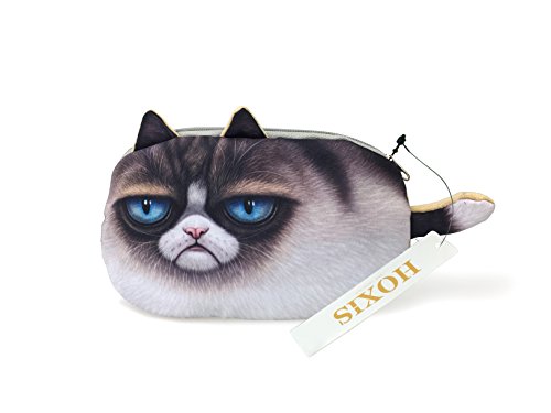 Product Description Cat Kitty Tabby Face Shaped Soft Fabric Zipper Coin Purse Make Up Bag Animal Cats Plush Pouch Furry wallet with zipper in the shape of Animals Perfect as a wallet, make up purse or for bits and pieces very good quality super cute design Stay organized with this super cute kitty cat shaped coin purse! It's made in the shape of a kitty cat with a grumpy expression on its face! Size: The coin purse measures 12 cm wide by 11 cm tall! It is fully lined and closes with a zipper. Material: Cotton Blend Adorable and cuddly! These coin purses are a must for any animal lover! Great for all your change or any small cosmetics you might need. This coin purse features include animal face front with tiny ear details, soft plush backing, soft inner padding, lining, and finished with a zipper closure. 100% Polyester. 0
