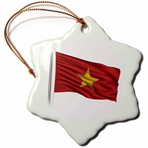 3dRose orn_157302_1 Flag of Vietnam on a Flag Pole Over White Vietnamese Porcelain Snowflake Ornament, 3-Inch