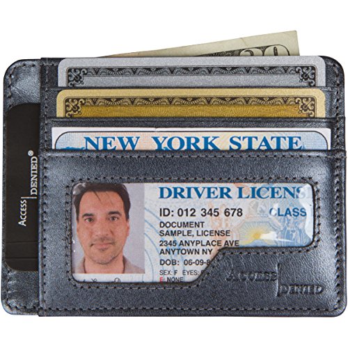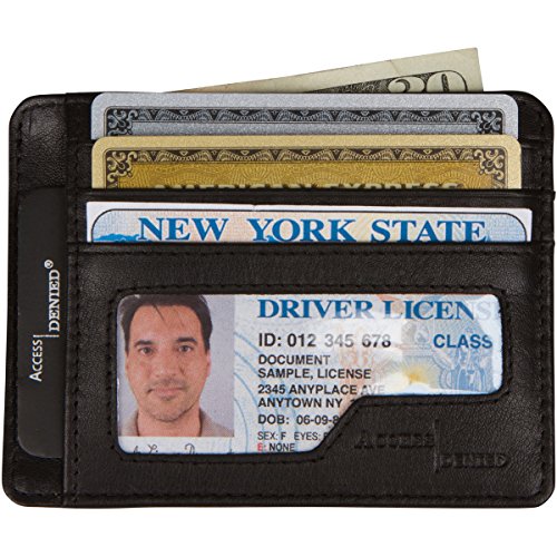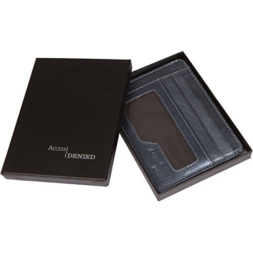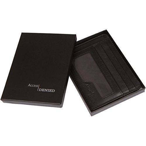-. Binding : Apparel -. Brand : Access Denied -. Department : mens -. Feature : RFID Blocking Protection, Slim front pocket wallet / Ultra slim 5 Credit Card Slots, 1 ID Window, 2 Slip Pockets, and 1 Currency Pouch / Only .75 inches wide! / Access Denied RFID Blocking technology meets FIPS-201 Security Standards / Dimensions: L 4.38'' x H 3.25" x W .75" -. ProductGroup : Apparel -. ProductTypeName : ACCESSORY -. Size : O M US -. Title : Access Denied RFID Leather Mini Wallet Slim Front Pocket