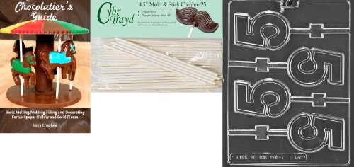 Cybrtrayd 'No. 5 Lolly' Letters and Numbers Chocolate Candy Mold with 25 4.5-Inch Lollipop Sticks and Chocolatier's Guide