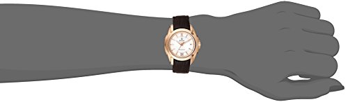 The most accurate watch in the world with a continuously sweeping second hand. In stainless steel with rose-gold finish, domed metalized crystal, multiple-layer silver-white, silver and rose-gold dial, continuously sweeping second hand, luminous hands, calendar, padded and stitched dark brown leather strap, locking deployment buckle and water resistance to 30 meters. Duet: 97B110
