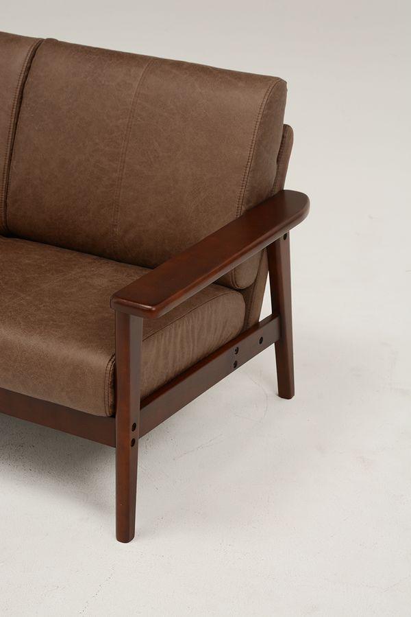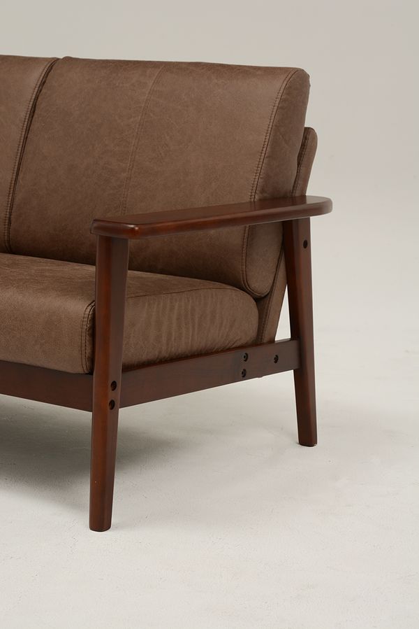 ●クッション性にも配慮した木肘ソファ。