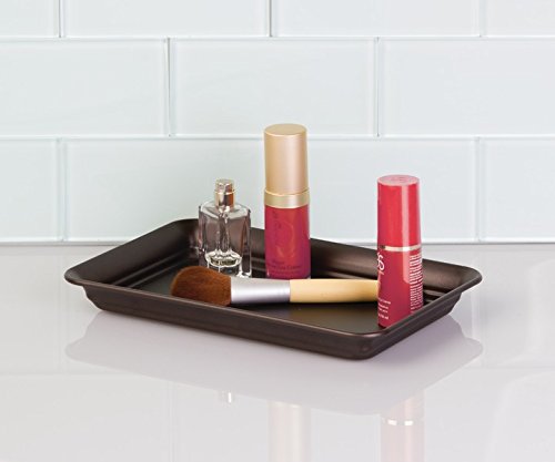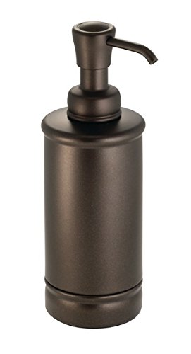mDesign Metal Soap Dispenser Pump, Toothbrush Holder Stand, Vanity Towel Tray, Glass Apothecary Jar - Set of 4, Clear/Bronze