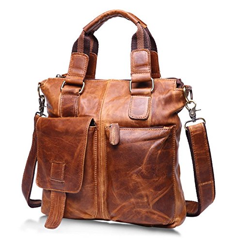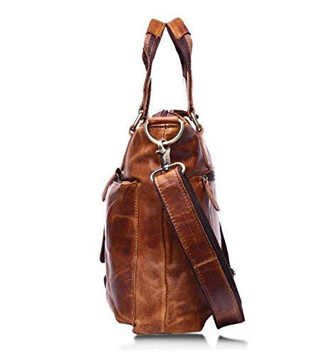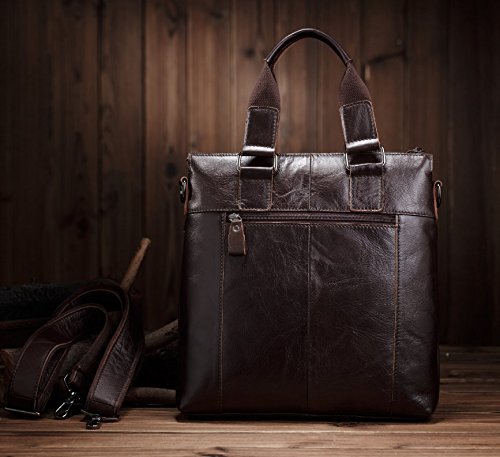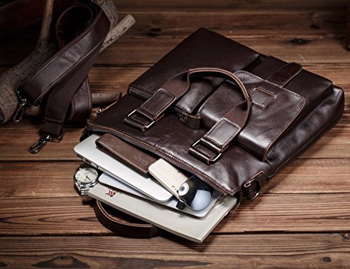 -. Title : Men's Vintage Crazy Horse Genuine Cow Leather Business Bag A4 Work Tote Briefcase Messenger Bag Shoulder Bag, Fit 11" Laptop