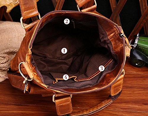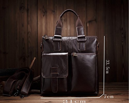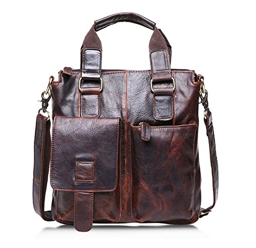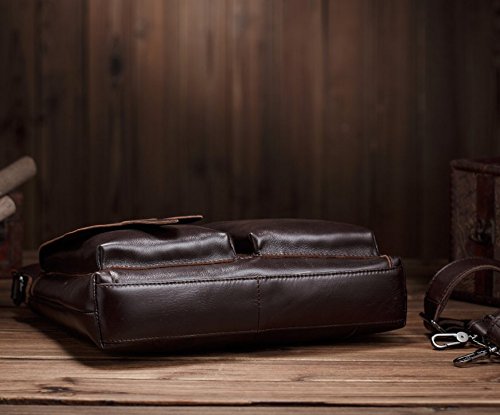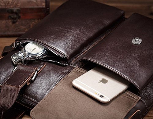 -. Feature : PREMIUM MATERIAL CONSTRUCTION: Superior Crazy Horse Genuine Cow Leather , Lining texture: Polyester lining, durable and red wash canvas fabric, SBS zippers, and quality hardware ensure long lasting durability. / HIGH QUALITY: Top Layer Crazy-Horse Genuine Cow Leather. Full leather and bronze tone hardware ; Adjustable, detachable leather & braid shoulder strap. Dimensions(Lx Hx W):11.8*12.2*3.1 inches. / MULTIFUNCTIONAL: Take this bag to work or school to use for your 11-Inch pad, magazines, A4 files, folders, cell phone, wallet, etc. / INTERNAL STRUCTURE: A total of 4 pockets.1 main pocket, 1 interior side zipped pocket ,1 mobile phone pocket, 1 wallet pocket. / EXTERNAL STRUCTURE: Front flat with buckle decoration and push button closure is great for quick-access items, inside with zipper closure, back exterior with zipper pocket, maximum security for valuables is guaranteed. DURABLE: This strong leather is very durable, you will be able to use this bag for many years to come.