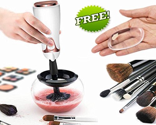 Clean Spin Electric Makeup Brush Cleaner and Dryer Including 8 Different Rubber Collars for Various Sized Brushes with Free Silicone Makeup Sponge