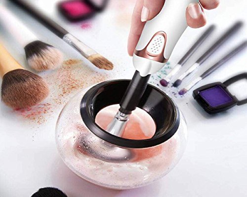 ♦INCLUDED IN PACKAGE: Electric Makeup Brush Cleaner and Dryer, 8 Rubber Collar, Glass Bowl, Bowl Splash Guard, User Manual AND Free Bonus – Silicone Makeup Sponge