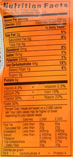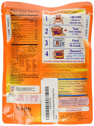 Uncle Ben's Basmati Ready Rice supports a well-balanced diet. Other nutritional benefits and product attributes include: a good source of niacin and iron, an excellent source of thiamine and folic acid, low fat and cholesterol free, and 0g trans fat and no saturated fat.