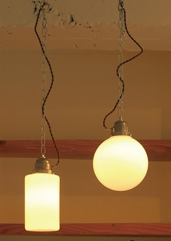 ガラス製のペンダントライト。シンプルながらもお部屋のワンポイントになります。 |