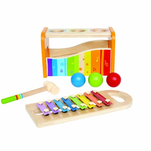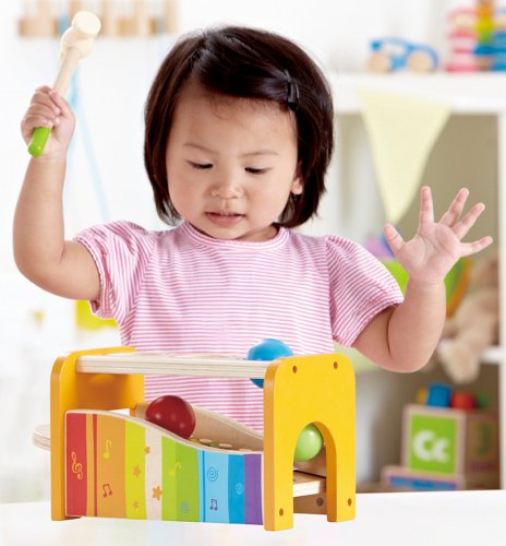 - Feature : Pound the balls and they will drop on the xylophone, tinkling out a pleasant scale of notes / Pull out the xylophone and play a tune directly on the keys / Great fun exploring rhythm and melodies / Hape finishes are all non-toxic, child safe, and of the highest quality / For ages 12 months - 3 years