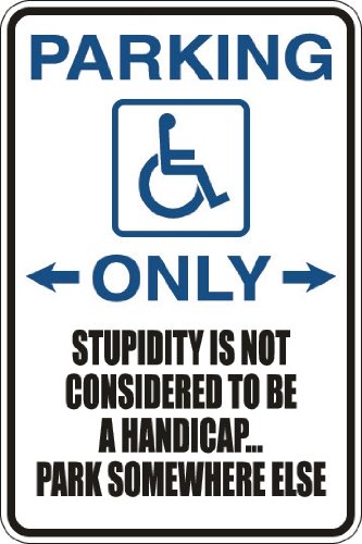 Handicap Parking Only Stupidity Is Not A Handicap 8" x 12" Metal Novelty Sign Aluminum S089