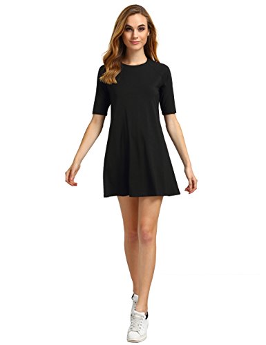 Round neck, short sleeve, shift t-shirt dress look. Style: tunic dress, loose fit dress, casual dress, solid dress, plain dress, summer tee dress.