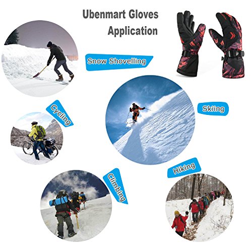 Ubenmart Waterproof Winter Ski Gloves When standing on the top of the mountain, soak in the fresh mountain air, the landscape is that inspires beauty, passion, and adventure, and we can't wait to join in. But, we need some quality, comfortable gear. Ubenmart use the premium insulated materials, to creat the ski gloves forms fitting, lightweight, breathable and comfortable. They can keep hands warm and dry for long. The extensive non-slip reinforcement for added durability and grip, and its perfect for working such as shoveling snow. Product info: Made of premium polyester, with waterproof design Size Chart: M: 18-19cm ---- L: 21-22cm ---- XL: 23-24cm The Middle finger length: M - 7 cm, L - 8 cm, XL - 9 cm. (Deviation range: /- 0.5 cm) Tips: Measuring the width of your palm at it's widest point - little below the knuckles. Package includes: 1 Pair of Warm Gloves 0