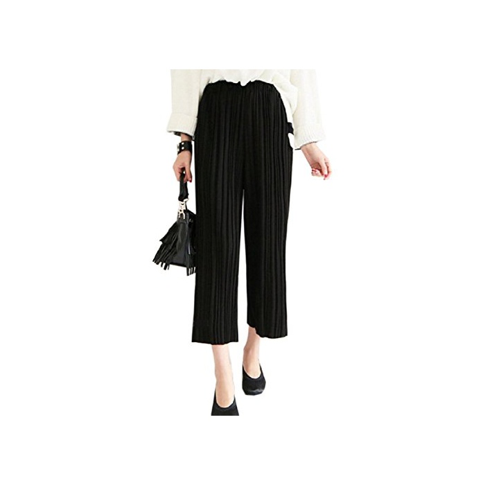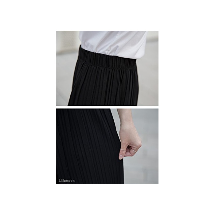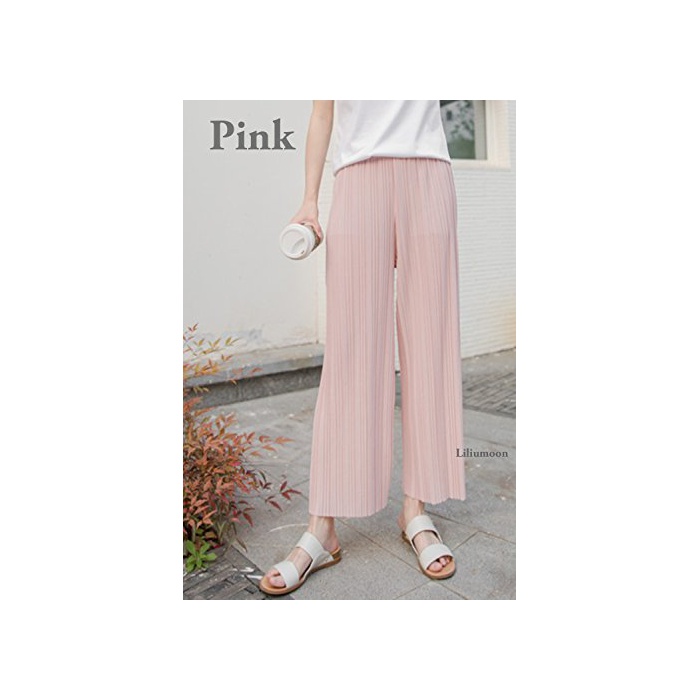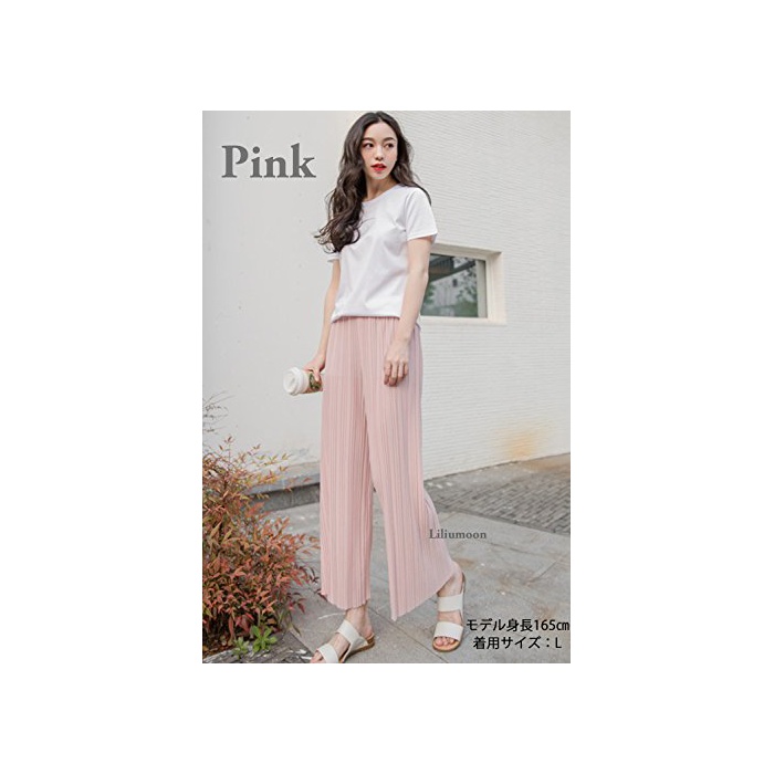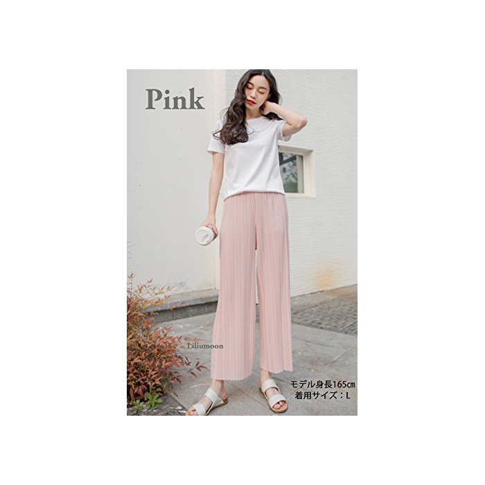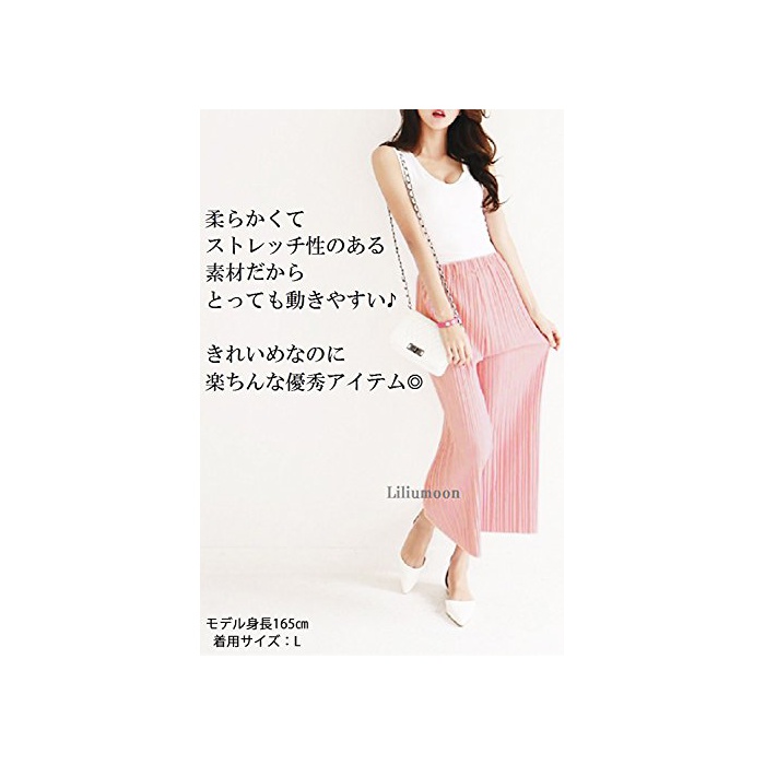 Liliumoon 플리츠 스트레치 소재 크로프드9 분키 와이드 가우쵸 팬츠 스카―《초》 스카《즈》 / 파스텔 컬러 무지 넉넉하게 실루엣 웨스트 고무 / 봄과 여름 레이디스 패션 /