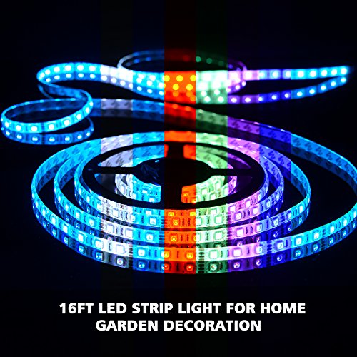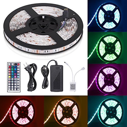 Sunnest 16.4ft LED Flexible Strip Lights, 300 Units SMD 5050 LEDs, 12V DC Waterproof Light Strips, RGB LED Light Strip Kit with 44Key Remote Controller and Power Supply for Kitchen Bedroom Car Party