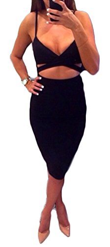 Basic Information: Sexy Long Sleeve Cut-Out Bandage Bodycon Clubwear Midi Dress
