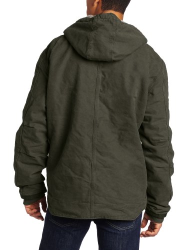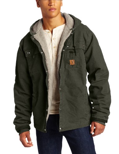 Perfect for winter weather, this Carhartt jacket features a warm sherpa lining and quilted nylon-lined sleeves to keep you comfortable without adding bulk. For extra warmth in cold weather, pull up the sherpa-lined hood and adjust its fit with the draw-cord closure.