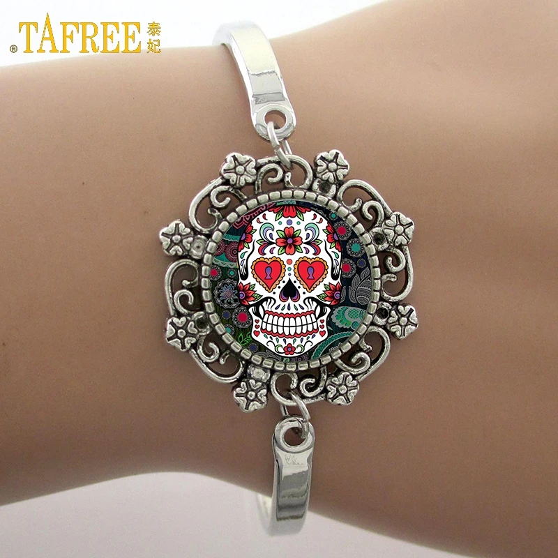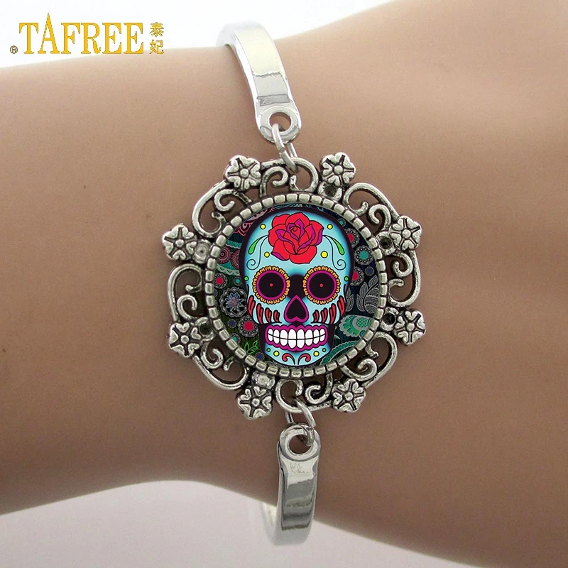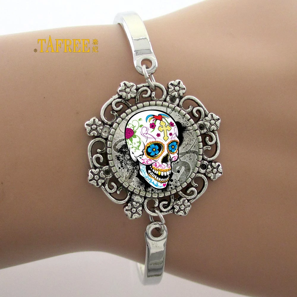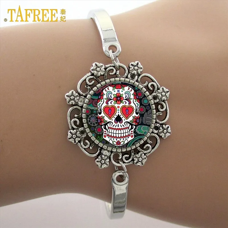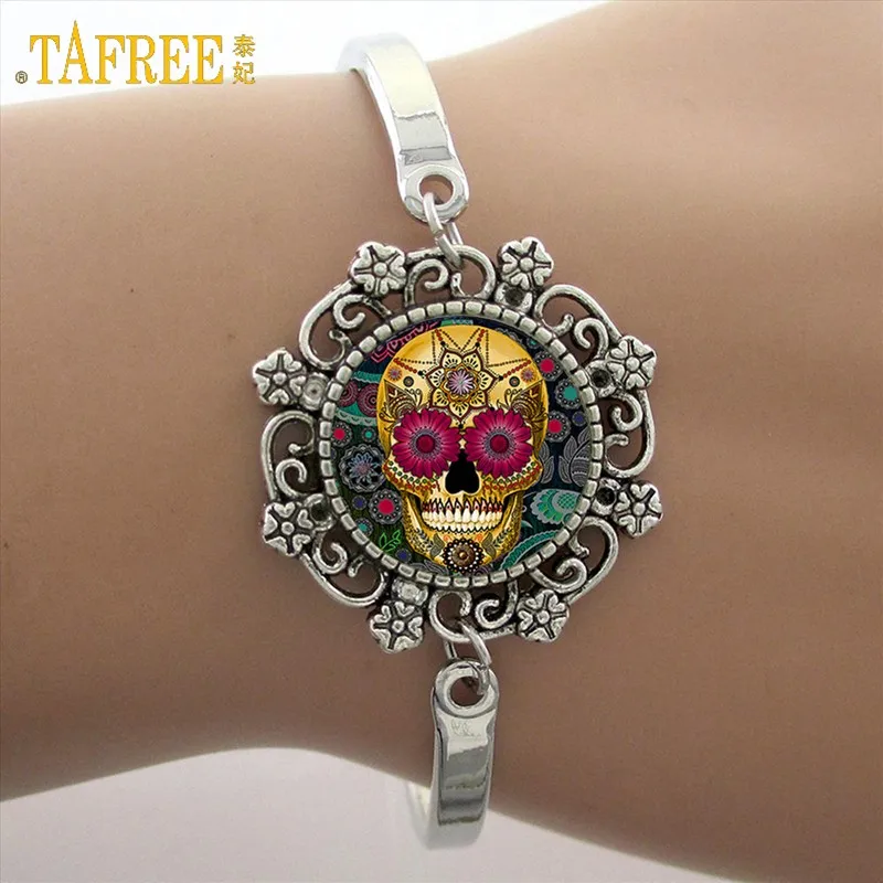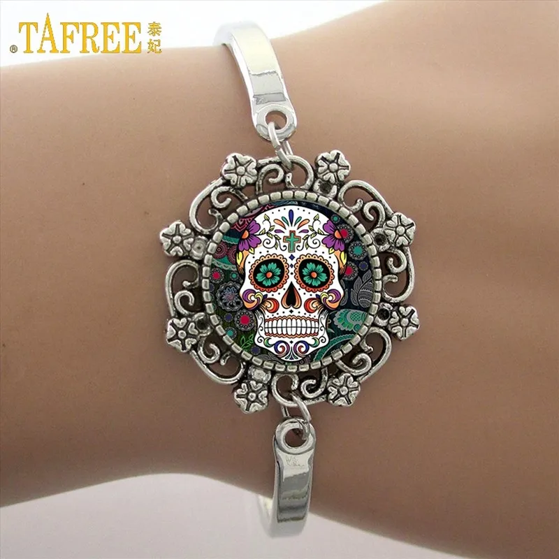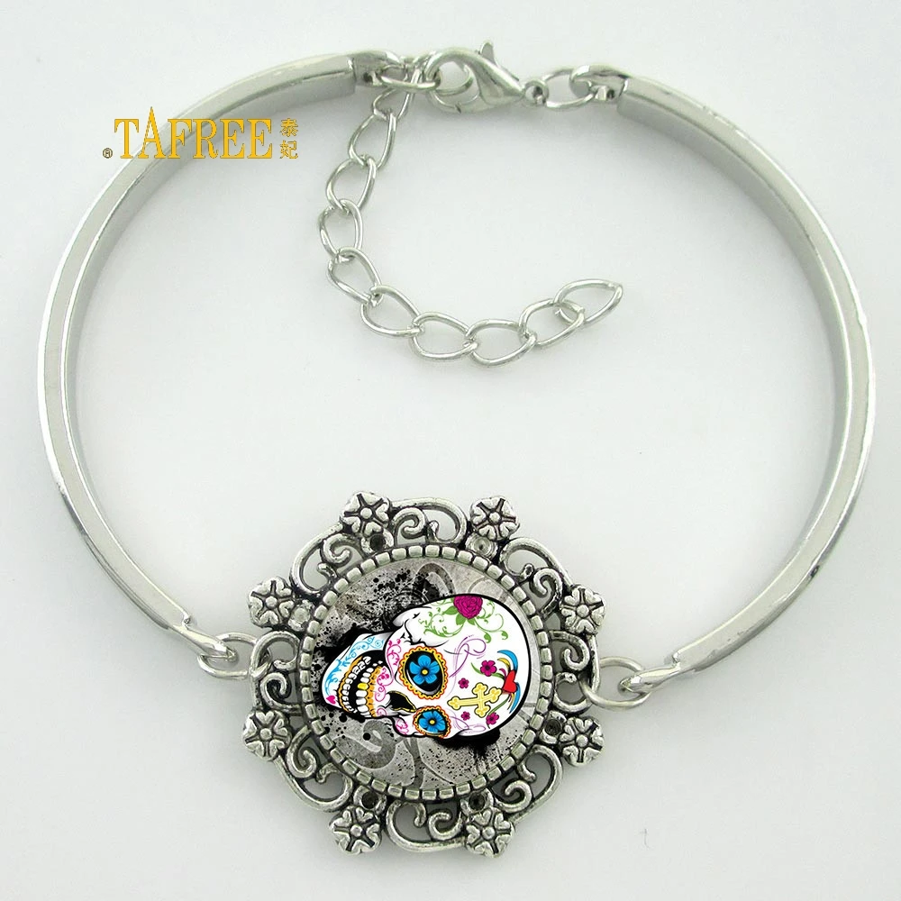Description:Sugar Skull Charm Glass Dome Bracelets