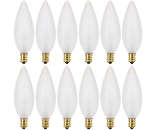 (Pack of 12) 25 Watt Frosted Candelabra Base (E12) Torpedo Tip 120V Chandelier Bulbs