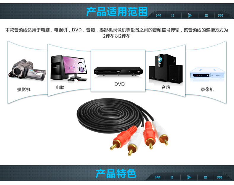 【产品名称】2莲花对2莲花音频线