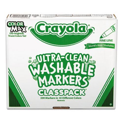 Studio : Crayola Publisher : Crayola Binding : Toy Product Description A great selection for a well-stocked classroom. Vibrant colors are specially formulated to easily wash from skin and most clothing. Water-based ink. Package includes twelve extra marker caps. Includes 20 of each color and 12 extra marker caps. Marker Type: Art Assortment: 20 Black 20 Blue 20 Brown 20 Gray 20 Green 20 Orange 20 Pink 20 Red 20 Violet 20 Yellow Colors: Assorted Tip Type: Fine. 0