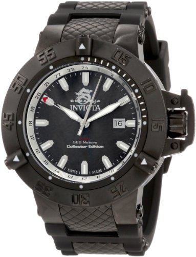 -. Feature : Swiss quartz movement / Flame-fusion crystal; brushed and polished black ion-plated stainless steel case; black polyurethane strap with black ion-plated stainless steel accents / Date function / Black dial with silver tone hands and hour markers; luminous; unidirectional bezel; gmt function; screw-down crown with protective clasp; collector edition / Water-resistant to 500 m (1640 feet)