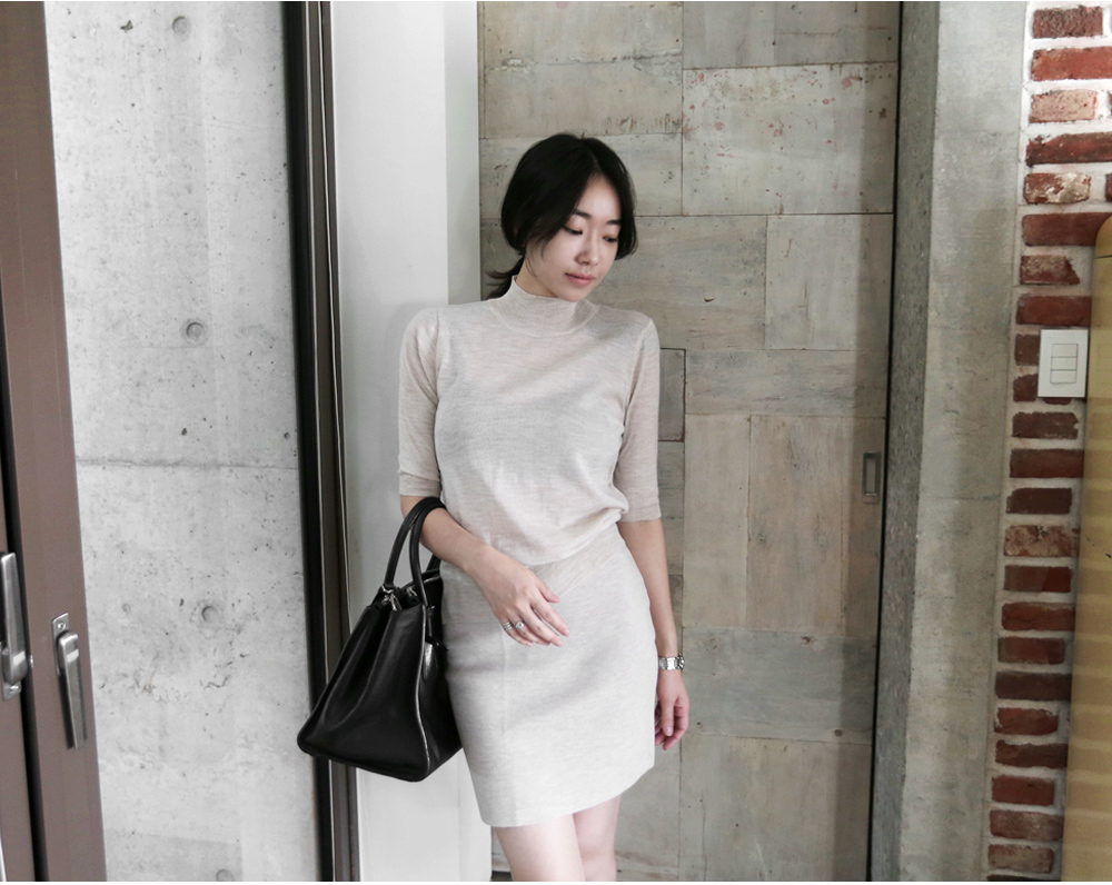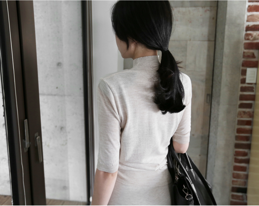 5부소매에 반폴라 네크라인이매력적인 니트에요.