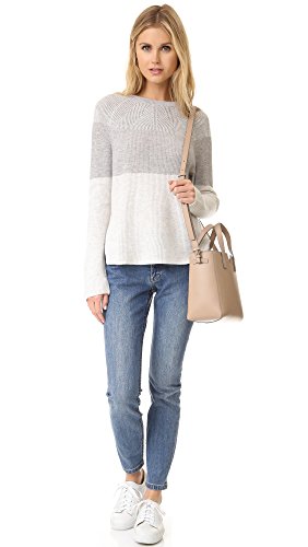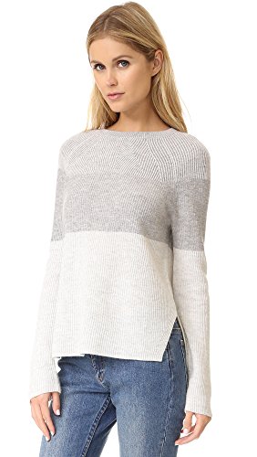 Directional ribbing and tonal color blocking bring modern interest to this crew neck sweater. The sides are cut diagonally to create flattering lines and soft movement with high split seams.Feature