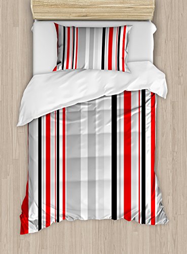 (Ambesonne)/Bedding Bath/Bedding/DIRECT FROM USA/Vintage Twin Size Duvet Cover Set by Ambesonne, Stripes in Different Sizes Retro Style Digital ...
