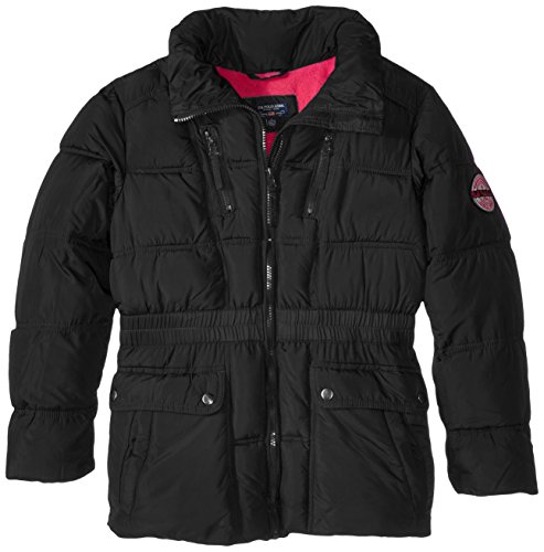 U.S. Polo Assn. Big Girls' Faux Fur Trimmed Hooded Bubble Parka, Black, 14/16