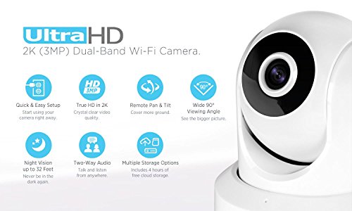 Amcrest UltraHD 2K (3MP/2304TVL) WiFi Video Security IP Camera with Pan/Tilt, Dual Band 5ghz/2.4ghz, Two-Way Audio, 3-Megapixel @ 20FPS, Wide 90° Viewing Angle and Night Vision IP3M-941W (White)