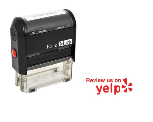 -. Binding : Office Product -. Brand : ExcelMark -. Feature : ExcelMark Self Inking Stamps are the most cost effective self inking stamps on the market / Features a two-sided ink pad that doubles the number of impressions and the useful life of the ink pad. It's like buying a traditional self inking stamp and getting an extra ink pad free. / Clear mount base for precise alignment of your stamp impression / Impression Area: 1/2" x 1-1/2" -. Label : Discount Rubber Stamps -. Manufacturer : Discount Rubber Stamps -. Model : A1539 -. MPN : 55304 -. PackageQuantity : 1 -. PartNumber : 55304 -. ProductGroup : Office Product -. ProductTypeName : OFFICE_PRODUCTS -. Publisher : Discount Rubber Stamps -. Studio : Discount Rubber Stamps -. Title : ExcelMark Self Inking Review Us On Yelp Stamp - RED ink