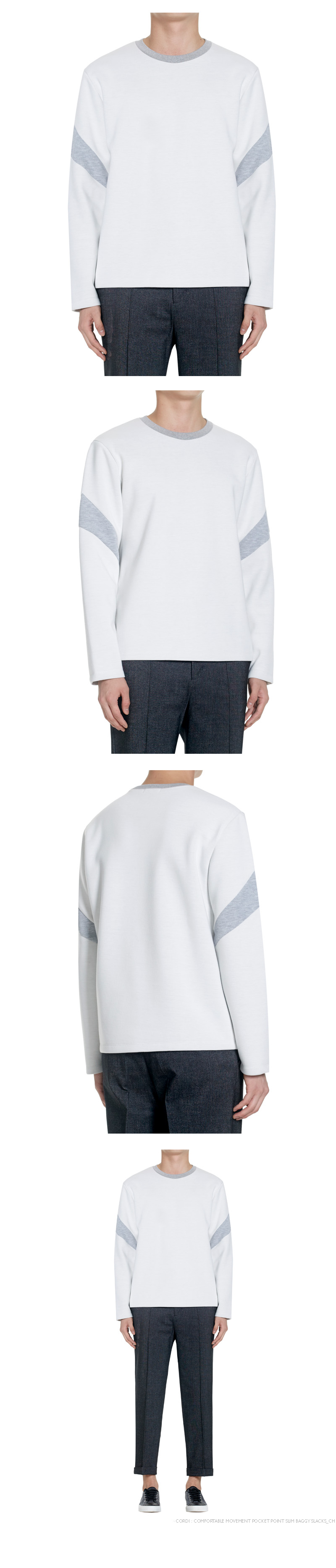 - 기본사이즈의 긴팔 티셔츠 - 소매 블럭과 넥립에 배색 - 착용감이 부드럽고 실루엣 유지 좋음 - 20'S 후라이스 립 사용 - 본딩원단 사용 - POLYESTER 65% RAYON 35% | |