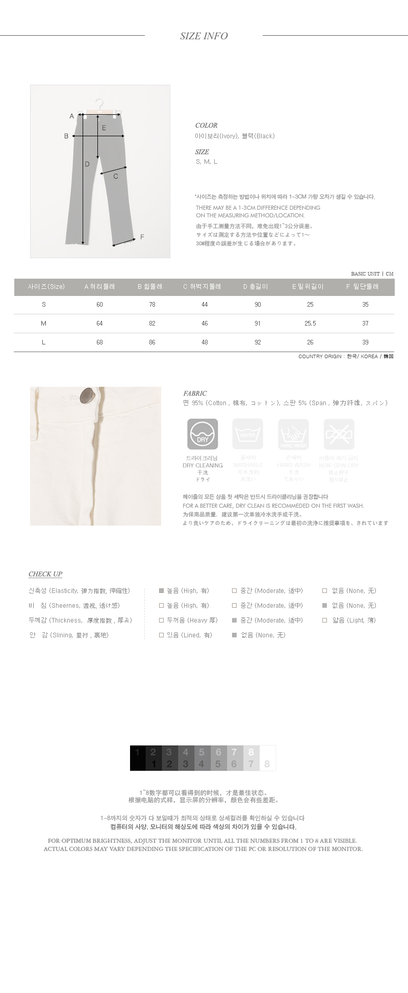 레그라인을 한층 더 길어보이고 슬림하게연출해드리는 트임디테일이 돋보이는일자팬츠 아이템이예요~^^셔츠,티셔츠 등 다양한 아이템들과 부담없이 즐길 수 있는 데일리 팬츠 아이템이랍니다~밑단 트임이 프론트에 가미되어 레그라인을 한층 더 길어보이고 슬림하게 연출해드린답니다~허리는 밴딩으로 더욱 편안한 착용감을 선사해드려요~적당한 두께감으로 계절에 구애없이즐길 수 있는 팬츠 아이템을적극 추천해드려요~