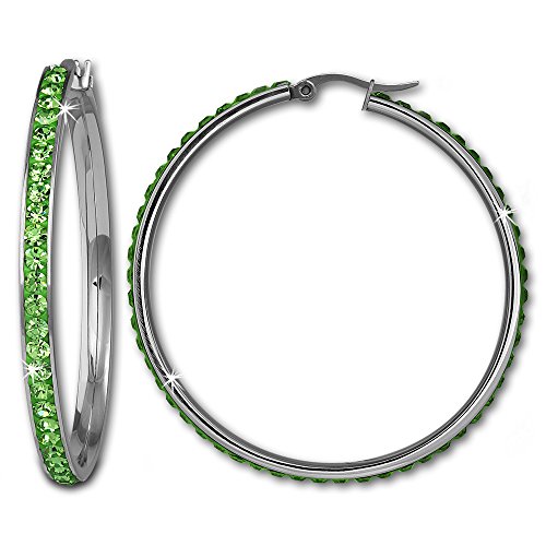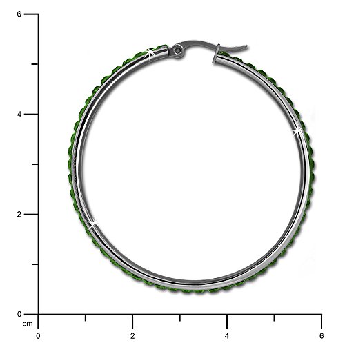 Amello Stainless steel hoop earring, with lots off light green Swarovski elements, diameter: 1.96 inch, original Amello ESOS05L