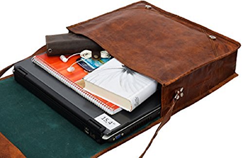 -. Feature : Dimensions: (WxHxD): 37 x 28 x 10 cm (15 x 11 x 4 in). Suitable for a standard 15in display Notebook. 1 main internal compartment, 2 additional pockets and 2 zip pockets. / Naturally (using vegetable oil) tanned Fair Trade goatskin produced by small family-run businesses. / Outer Material: Leather / Ideal for safely storing laptops, netbooks, notebooks, iPad, iPad Air, MacBook, MacBook Air, MacBook Pro and much more. / Material Composition: 90% Leather 10% Textile