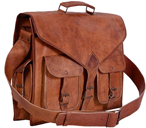 -. Title : universal leather 18 inch leather laptop messenger bag briefcase satchel