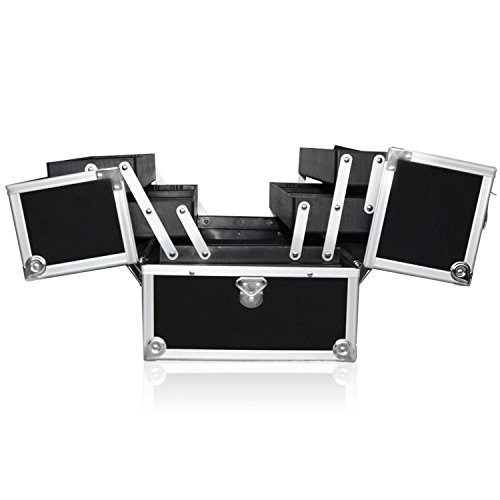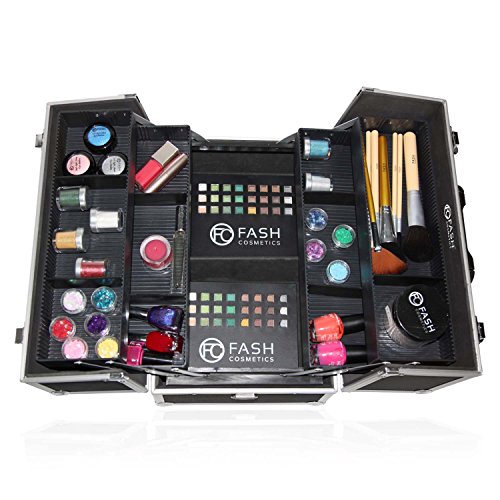 FASH Cosmetics Professional Makeup Train Case Aluminium Black and Silver Frame