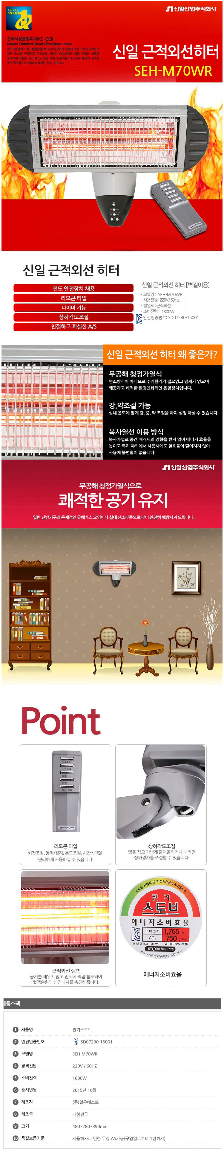 Shinil Wall Mount Near Infrared Heater SEH-M70WR