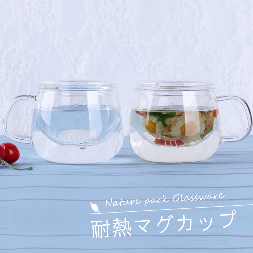 / Glass mug cup is popular to enjoy tea and herb tea by making full use of the feature that inside is visible.