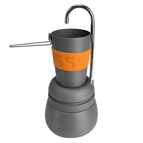 BUILT FOR TWO: The design of the coffee maker is built to brew 2 cups of coffee at a time that fits perfectly into the 2 provided cups. Camping burner set SOLD SEPARATELY.