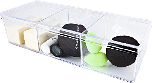 Clear Plastic Stackable Organizer Storage Case for Beauty Blenders, Cotton Balls, Swabs, Jewelry, Makeup, and Cosmetics