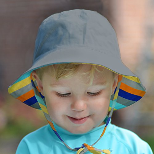 i play. Toddler Reversible Bucket Sun Protection Hat, Gray/Multi Stripe, 2T-4T