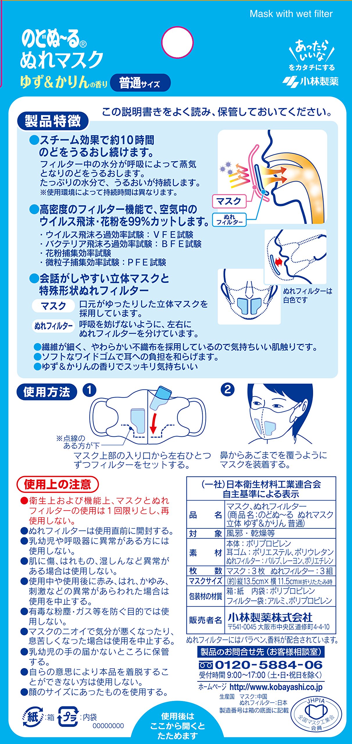 Nodonu ~ Runure mask three-dimensional type Yuzu & Karin scent 3 pieces × 3 piece set of