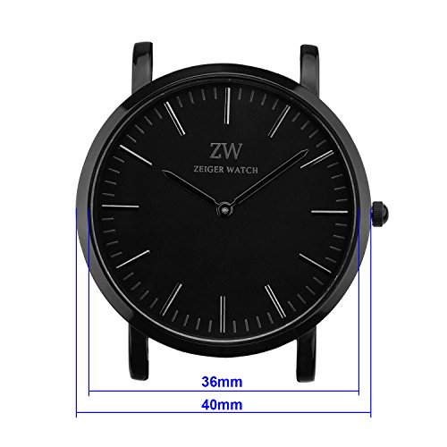 Brand, Seller, or Collection Name:zeiger Model number:A2Z443 Part Number:A2Z443 Item Shape:Round Display Type:Analog Case diameter:1.57 inches Case Thickness:0.31 inches Band Material:leather Band width:0.78 inches Band Color:Black Dial color:Black Special features:Analog Movement:Analog quartz