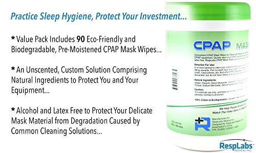 ► YOU CAN NOW BREATHE & SLEEP EASY — Effective for removing oils, dirt, grease, bacteria & residue putting you at risk for acquiring an infection. Sleep easy with an alcohol & latex-free towelette, important in preventing the breakdown of silicone. Each contains a special formulation to protect your investment: nose, full or total face masks, or even nasal pillows, in adult, child, pediatric, infant or neonatal. Use with CPAP, BiPAP equipment, tubing & headgear included...
