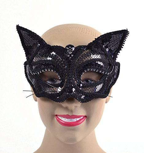 -. Feature : Cat eye mask with glass frame / Includes mask with sequin detail / Ideal for fancy dress or masquerade ball / Colour: Black / Size: One size
